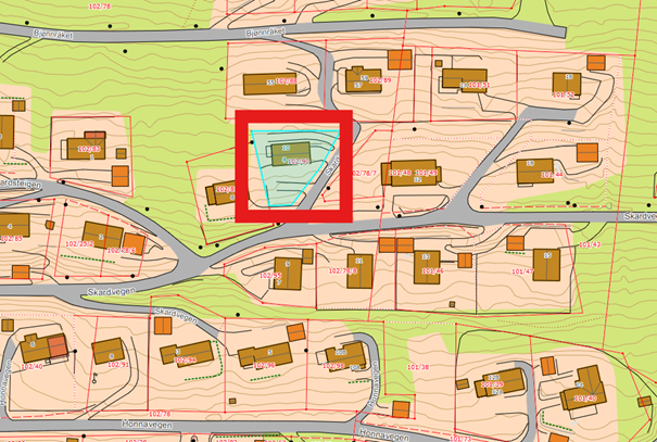 Fig 1: Utsnitt oversiktskart over Skardvegen 8, 10